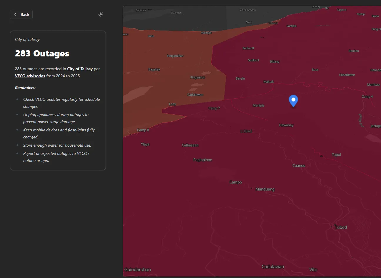 With VECO data now live on the Power Outages Map, residents and organizations in Cebu City, Mandaue, Lapu-Lapu, Talisay, and neighboring municipalities can now see outage patterns in their own areas.