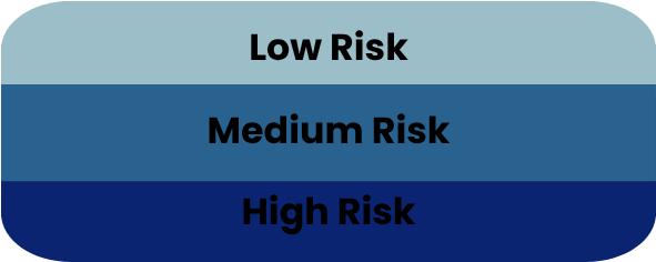 Through our architecture, users can easily switch between the three scenarios, examine each level of risk, and see it expressed through a simple three-tier system: Low, Medium, and High. To make these levels instantly readable, we use a consistent color scheme—from soft light blue to deep navy.